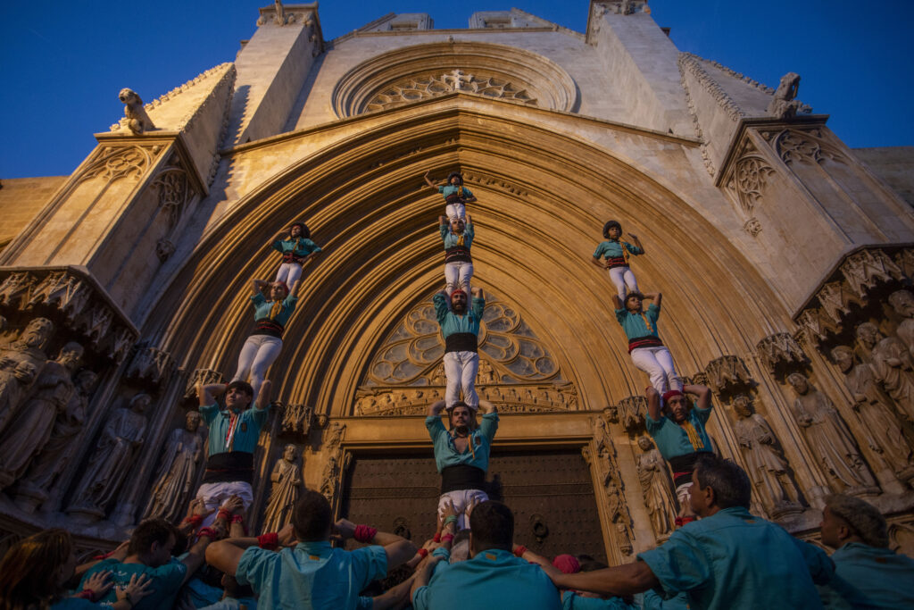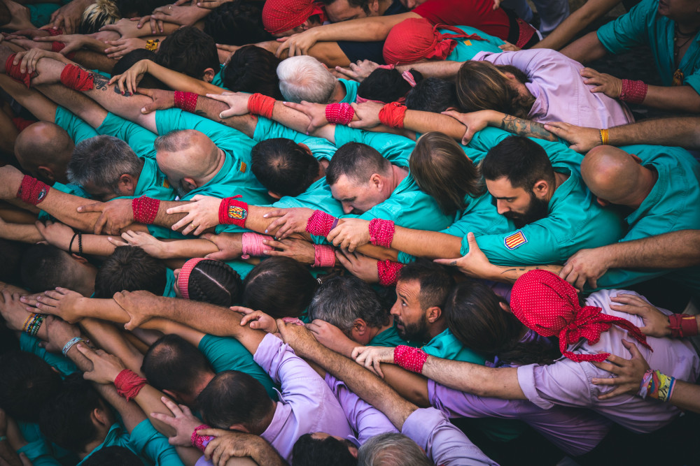 ユネスコ遺産に認定されてもカステリェルスが守り抜いているのは、コリャのアマチュア性。週末ごとのパフォーマンスで賞金などが生じることはなく(例外はConcurs de Castells)、どんなに難易度が高い塔を実現しても、挑戦と自己実現の場としての評価を最も大事にしています。家族と一緒に体一つで参加できるのも魅力で、地域ごとで行われるゆえコリャに属するだけで、自分の住んでいる地域の人々との交流が一気に広がるのです。スペイン各地に伝統文化は多々あれども、これほどチームワークを要し、文字通り人と人をつなげることができる文化は少ないかもしれません。