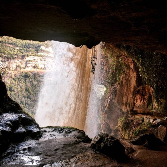ここから急な階段を下ると「サンミケル洞窟」にたどり着きます。水と石灰石が作り出す自然の芸術。そして、敷地内を散策しながら、この修道院の象徴ともなる姿、テネス川から流れ出る滝を満喫してください。滝を背中から見る光景もまた一興です。